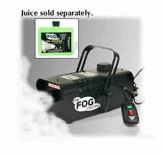 Comes with remote control. Fog juice not included - available starting at $11.50 a quart.